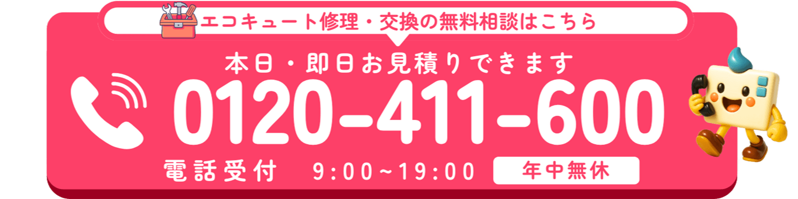 お電話、メール、LINEでお問い合わせ下さい。修理相談や交換の相談、廃盤商品の後継機種や、お客様のご家庭に合うエコキュートのご提案など、エコのQ太郎がご案内いたします。