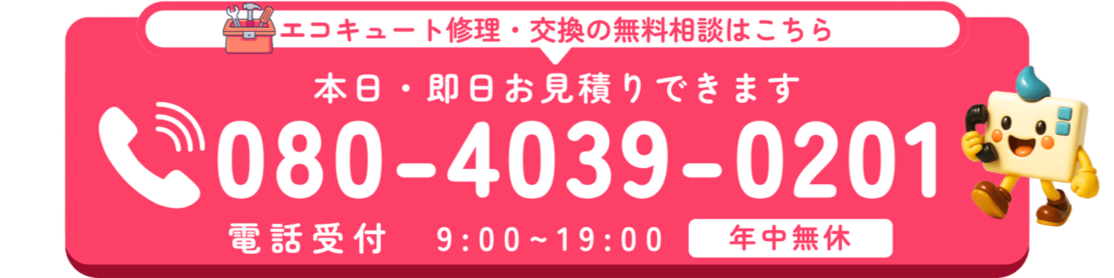 お電話、メール、LINEでお問い合わせ下さい。修理相談や交換の相談、廃盤商品の後継機種や、お客様のご家庭に合うエコキュートのご提案など、エコのQ太郎がご案内いたします。