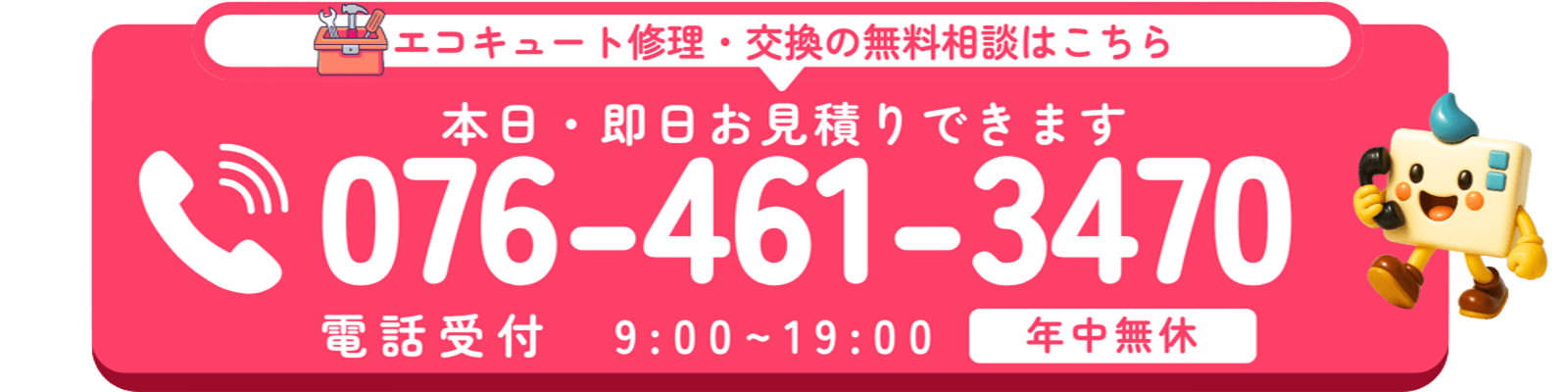 お電話、メール、LINEでお問い合わせ下さい。修理相談や交換の相談、廃盤商品の後継機種や、お客様のご家庭に合うエコキュートのご提案など、エコのQ太郎がご案内いたします。